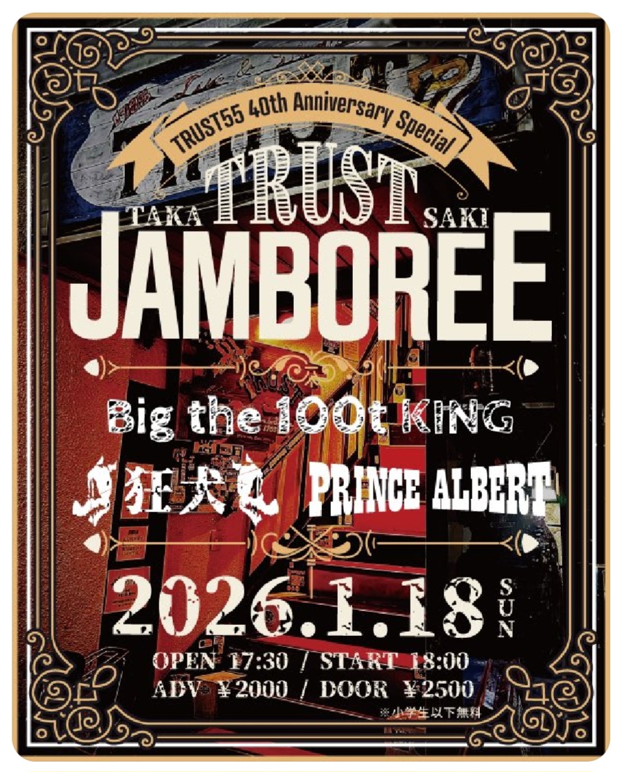 TRUST55 40th Anniversary Special Live 高崎TRUST JAMBOREE 出演 Big the 100t KING 狂犬 PRINCE ALBERT ![]() |